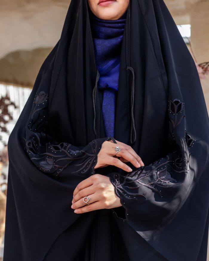 تزئینات: گلدوزی روی دست + نگین‌کاری ریز
